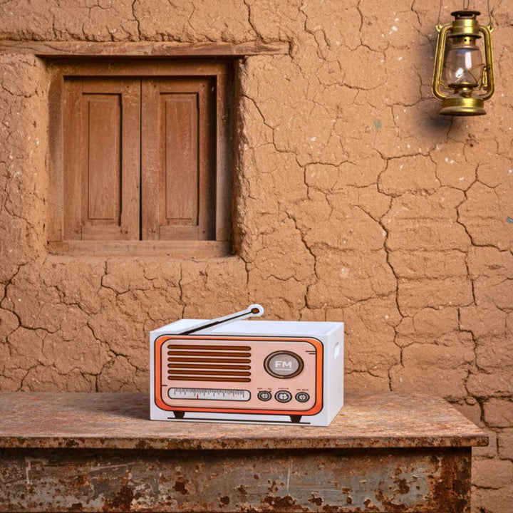 بوكس تراثي بتصميم راديو قديم يجسد أجواء الماضي الجميل وذكريات الجلسات العائلية وقت كان الراديو هو صديق البيوت في الإمارات.