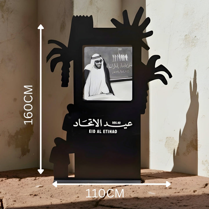 استحضر روح القائد المؤسس الشيخ زايد عبر لوحة فنية بارتفاع 160 سم وعرض 110 سم، تمتزج فيها الصورة الرئيسية لزايد الخير مع تفاصيل من التراث الإماراتي مثل الصقارة، البحر والدهو، القهوة العربية، والنقوش التقليدية (وفق النسخة المختارة). صُمّمت بتوليفة لونية متوازنة وتشطيب فاخر يلائم الديكورات المودرن والكلاسيك، ومثالية لليوم الوطني، يوم العلم، المعارض والفعاليات، وقاعات الاستقبال.