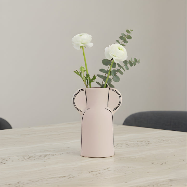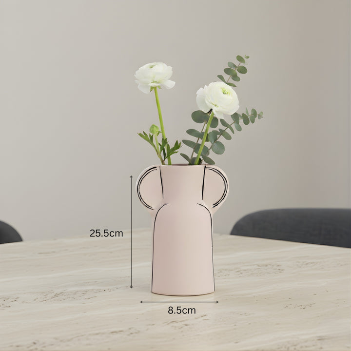 ارتقِ بديكور بيتك مع فازة بتصميم مودرن تجمع بين البساطة والفخامة. تناسب الورد الطبيعي والاصطناعي، وتُضفي لمسة أنيقة على غرفة المعيشة، طاولة القهوة، المدخل أو غرفة النوم.