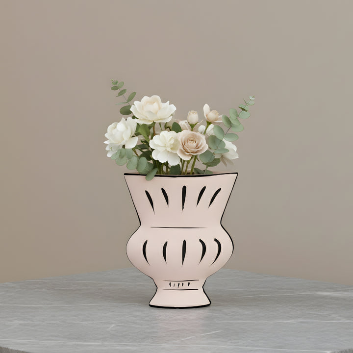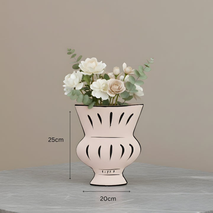 ارتقِ بديكور بيتك مع فازة بتصميم مودرن تجمع بين البساطة والفخامة. تناسب الورد الطبيعي والاصطناعي، وتُضفي لمسة أنيقة على غرفة المعيشة، طاولة القهوة، المدخل أو غرفة النوم.